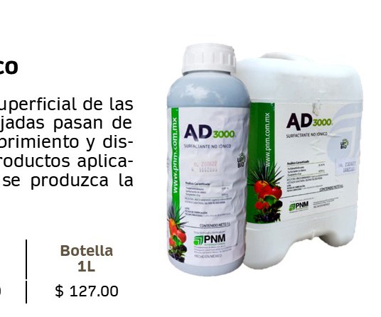 Surfactante no iónico. Es un producto diseñado para romper la tensión superficial de las mezclas de aspersión con lo que las gotas asperjadas pasan de forma redonda a aplanada, logrando un mejor cubrimiento y distribución del producto. Además permite que los productos aplicados permanezcan el tiempo suficiente para que se produzca la acción de adherencia y penetración. Composición: Polidimetilsiloxano 95.90%, Excipiente c.b.p. 1000 cc
