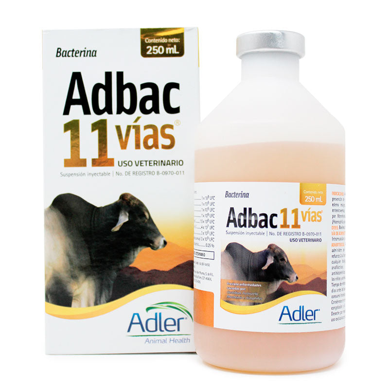 Adbac 11 vías es una vacuna polivalente desarrollada por el laboratorio Alder para uso en bovinos, caprinos y ovinos. Su fórmula contiene una combinación de bacterias inactivadas adsorbidas en hidróxido de aluminio, diseñada para la prevención de múltiples enfermedades infecciosas en el ganado.