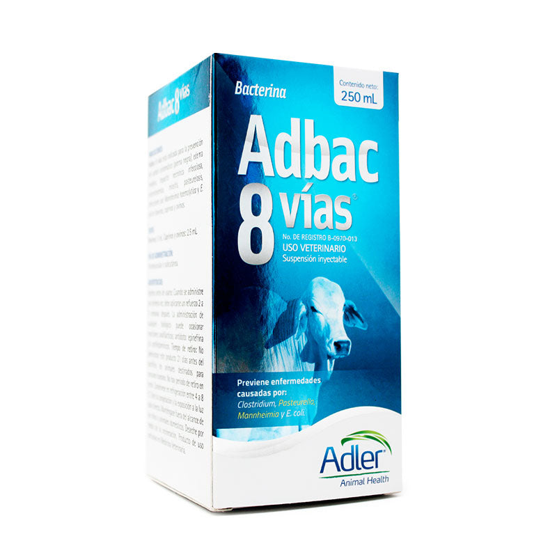 Adbac 8 vías es una vacuna polivalente desarrollada por el laboratorio Alder para bovinos, caprinos y ovinos. Su fórmula contiene una combinación de bacterias inactivadas adsorbidas en hidróxido de aluminio, diseñada para la prevención de múltiples enfermedades clostridiales y bacterianas en el ganado.