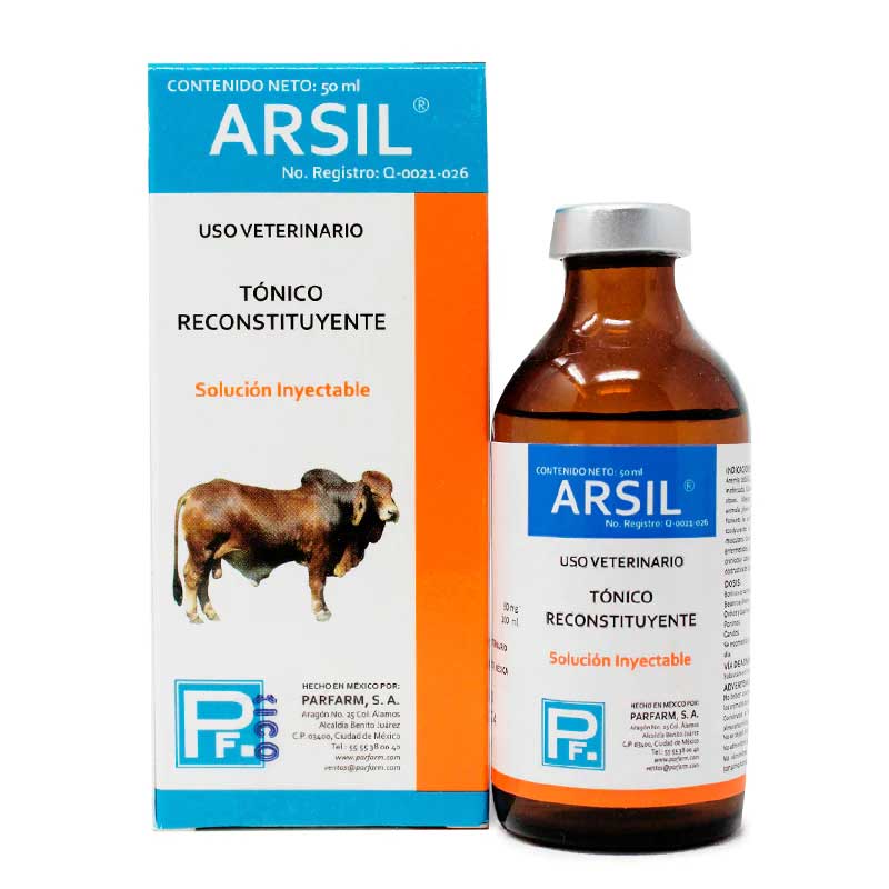 Arsil 50 ml sirve como tónico reconstituyente y suplemento arsenical para tratar anemia, debilidad, agotamiento y alteraciones por nutrición inadecuada en todas las especies. También es útil en caquexia, alteraciones del desarrollo, enflaquecimiento de animales jóvenes y como coadyuvante en enfermedades de la piel y catarro bronquial crónico.