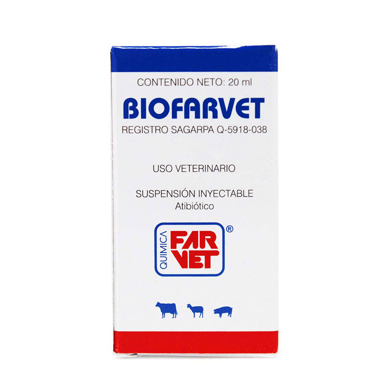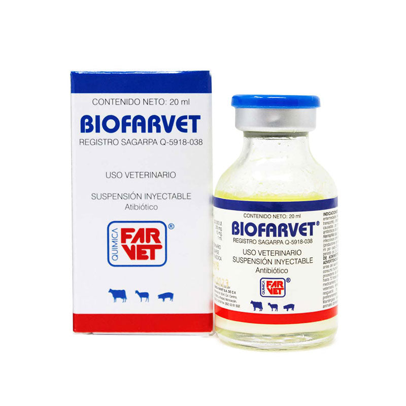 Biofarvet es un antibiótico combinado con antiinflamatorio de Quimica Farvet para bovinos, formulado con Penicilina G Procaína, Dihidroestreptomicina y Prednisolona. Está indicado para el tratamiento de enfermedades respiratorias como la fiebre de embarque, infecciones de vías respiratorias altas y procesos inflamatorios infecciosos.