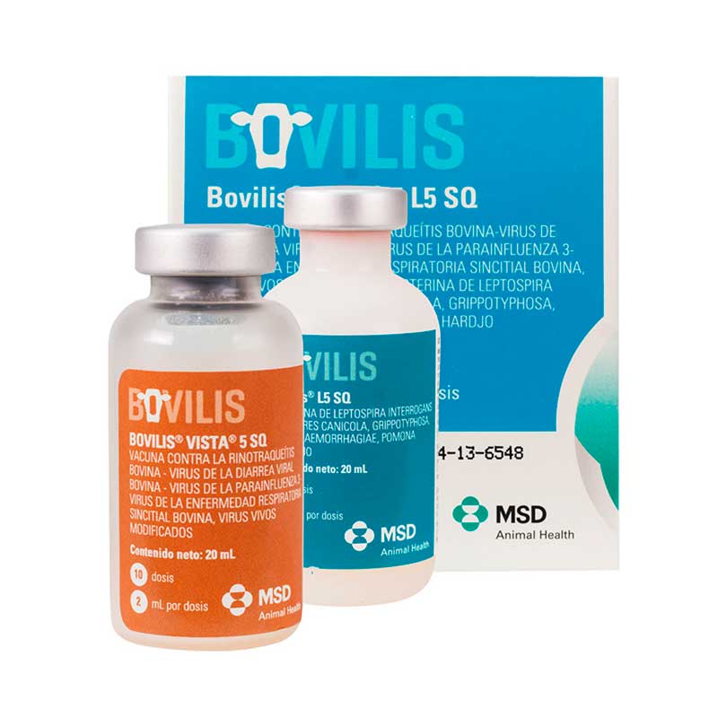 Bovilis Vista 5 L5 SQ 20 ml 10 Dosis es una vacuna polivalente de MSD Salud Animal para bovinos, diseñada para la prevención de enfermedades respiratorias y reproductivas.