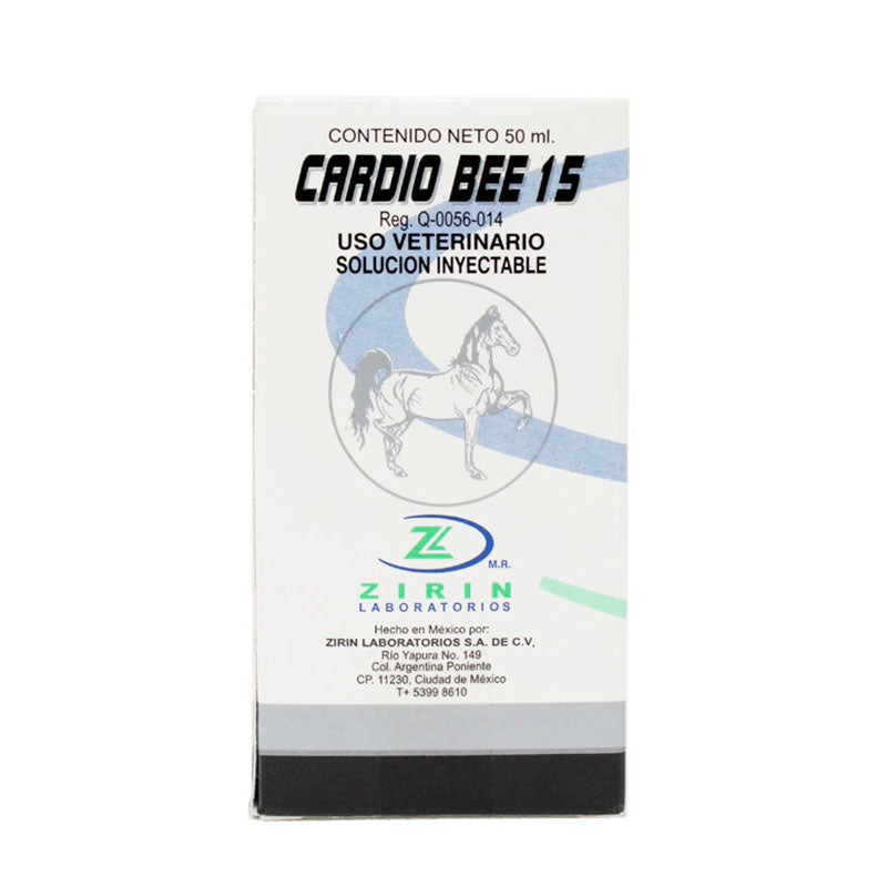 Cardio Bee 15 es un suplemento vitamínico de Zirin para equinos, cuyo principio activo es el Pangamato de Sodio (Vitamina B15). Está indicado principalmente para tratar la anoxia simple por compresión y mejorar el flujo sanguíneo pulmonar en caballos de carreras o en esfuerzo continuo.