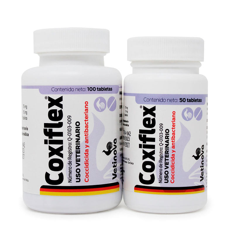 Coxiflex® Tabletas es un producto veterinario de Vetinova, formulado con Sulfadimetoxina y Trimetroprim. Es un coccidicida y antibacteriano indicado para el tratamiento de enfermedades en aves de combate.