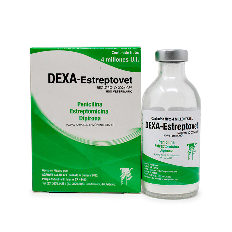 Dexa-Estreptovet es un producto veterinario de Agrovet México que combina Penicilina, Estreptomicina y Dipirona. Es una combinación de antibióticos de acción rápida y lenta eliminación, indicado para el tratamiento de diversas enfermedades infecciosas en bovinos.