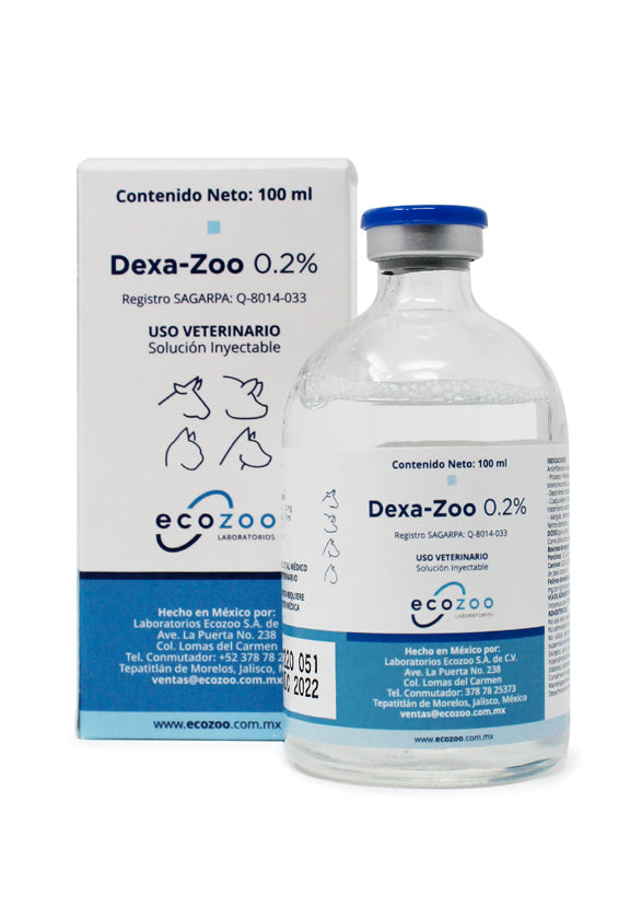 Dexa-Zoo 0.2% es un antiinflamatorio esteroidal de Ecozoo para bovinos, cuyo principio activo es Dexametasona 21 fosfato de sodio. Está indicado para el tratamiento de procesos inflamatorios en bovinos de engorda.