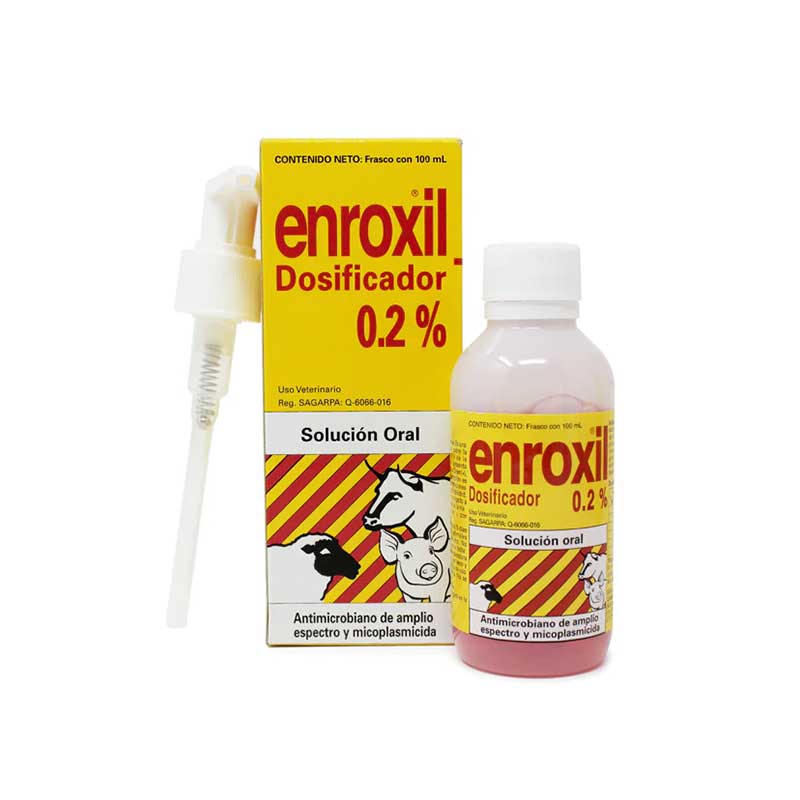 Enroxil 0.2% Dosificador 100 ml es un antibiótico de amplio espectro (Enrofloxacina) para bovinos, fabricado por Senosiain. Se utiliza para el tratamiento de infecciones bacterianas en esta especie.