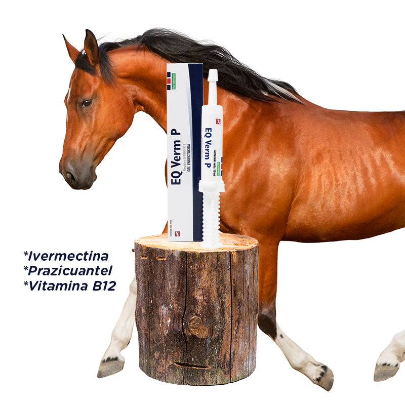 EQ Verm P es un gel endectocida oral para equinos de Calier, formulado con ivermectina al 1.2% y prazicuantel al 9%, enriquecido con vitamina B12. Está indicado para el tratamiento y control de parásitos internos y externos en caballos.