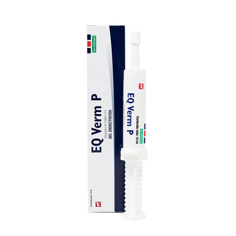 EQ Verm P es un gel endectocida oral indicado para el tratamiento de parásitos cutáneos, pulmonares, gastro-intestinales y gasterófilos en equinos. Su fórmula combina ivermectina, prazicuantel y vitamina B12 para un tratamiento integral.