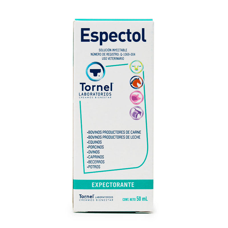 Espectol® es un antiséptico respiratorio y descongestionante de Tornel, formulado con guayacol, eucaliptol, gomenol, éter sulfúrico y yodoformo, para uso en bovinos.