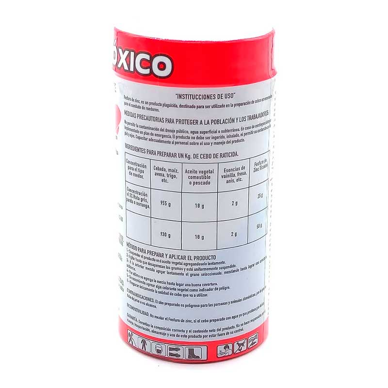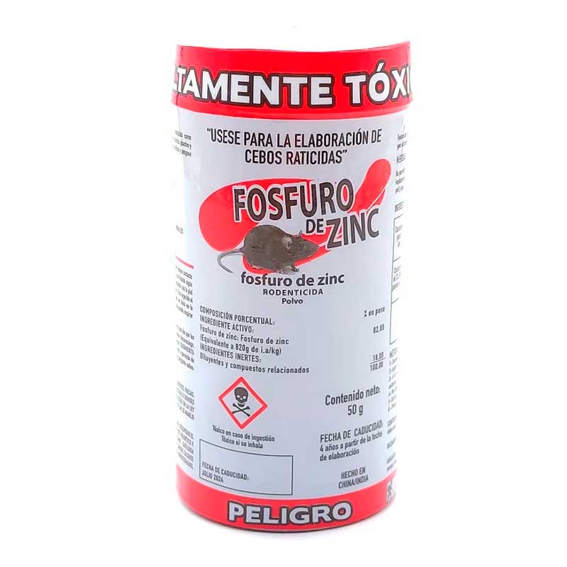 Fosfuro de Zinc 50 g sirve como rodenticida fumigante para el control de roedores en granos almacenados. Su uso está indicado para proteger las reservas de alimento de daños y contaminación por plagas.
