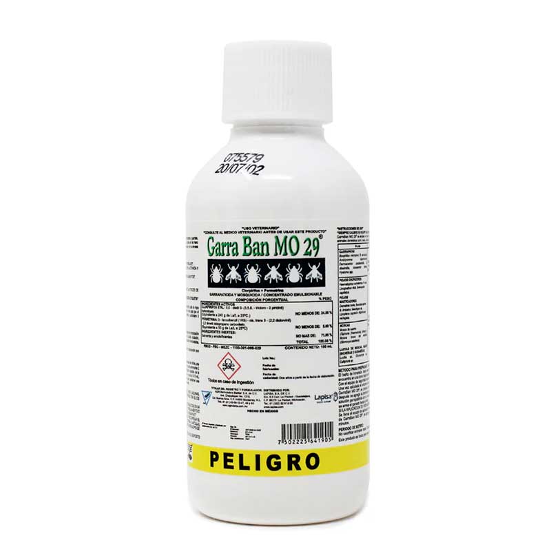 Garra Ban MO 29 es un antiparasitario externo e interno de amplio espectro, fabricado por el laboratorio Lapisa, diseñado para el control de parásitos en bovinos.