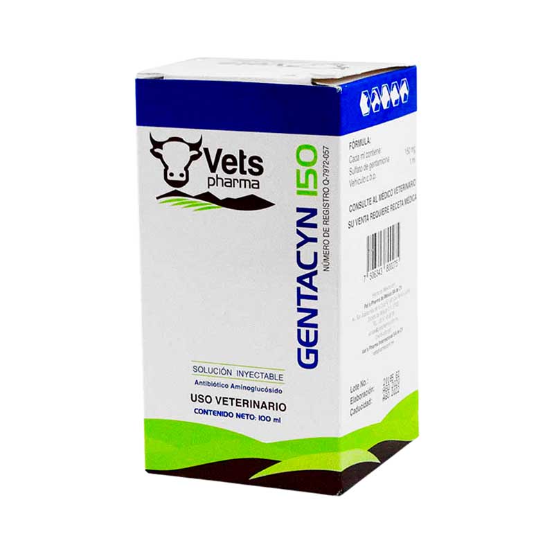 Gentacyn 150 100 ml es un antibiótico de amplio espectro con gentamicina, fabricado por Vets Pharma, para uso en bovinos. Su uso principal es el tratamiento de infecciones bacterianas.