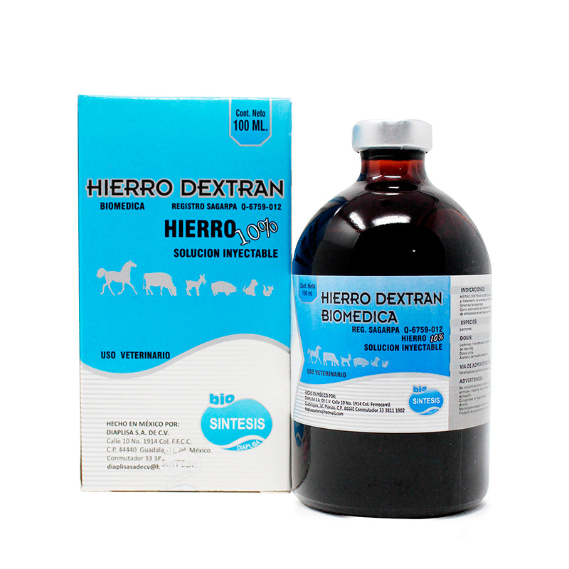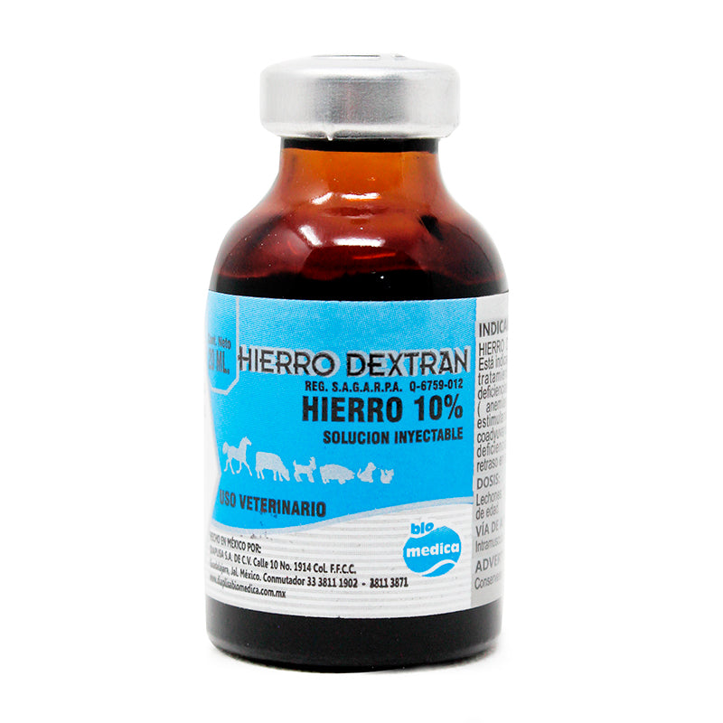 HIERRO DEXTRAN BIOMÉDICA, está indicado para la prevención y tratamiento de anemias por deficiencias de hierro en lechones (anemias ferropénicas). Como estimulante del crecimiento y coadyuvante en el tratamiento de deficiencias en animales con retraso en su desarrollo.