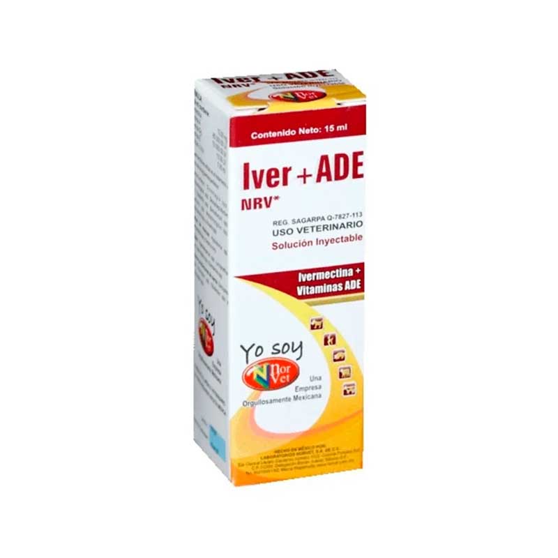 Iver+ADE NRV 15 ml es un antiparasitario inyectable de amplio espectro de la marca Norvet, formulado para el control de parásitos internos y externos en bovinos.