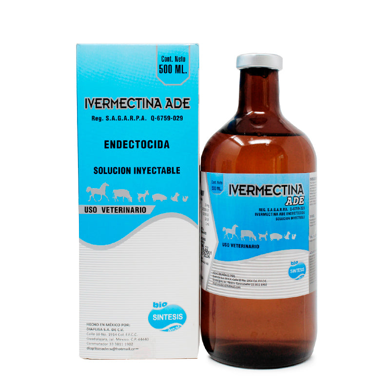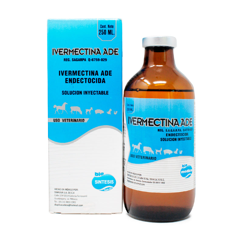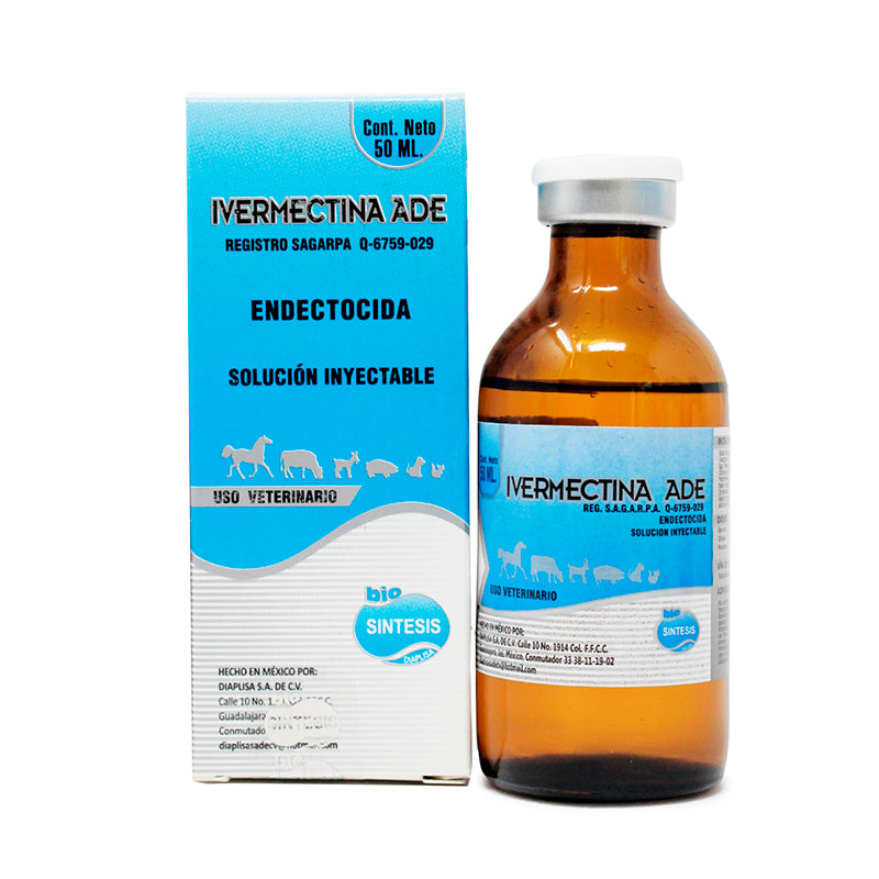 Ivermectina ADE 2% es un antiparasitario endectocida con vitaminas A, D3 y E, fabricado por Diaplisa, para uso en bovinos. Está indicado para el control y tratamiento de parásitos gastrointestinales, pulmonares y externos.