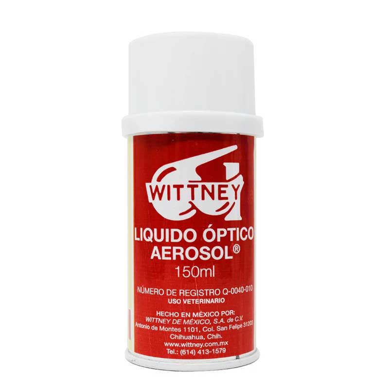 Líquido Óptico Aerosol 150 ml de Wittney es un antiséptico oftálmico formulado con violeta de metilo, alcohol bencílico, alcohol isopropílico, aceite de ricino y urea, indicado para el tratamiento de infecciones oculares en bovinos.