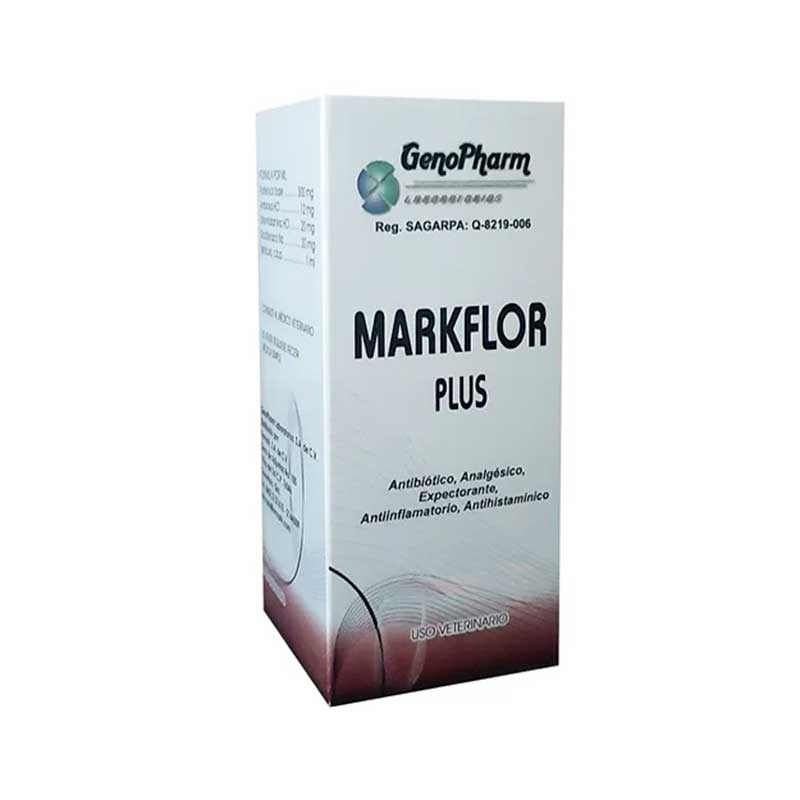 Markflor Plus 100 ml es un antibiótico de amplio espectro de la marca GenoPharm, formulado específicamente para bovinos. Su uso principal es el tratamiento de infecciones bacterianas de amplio espectro.