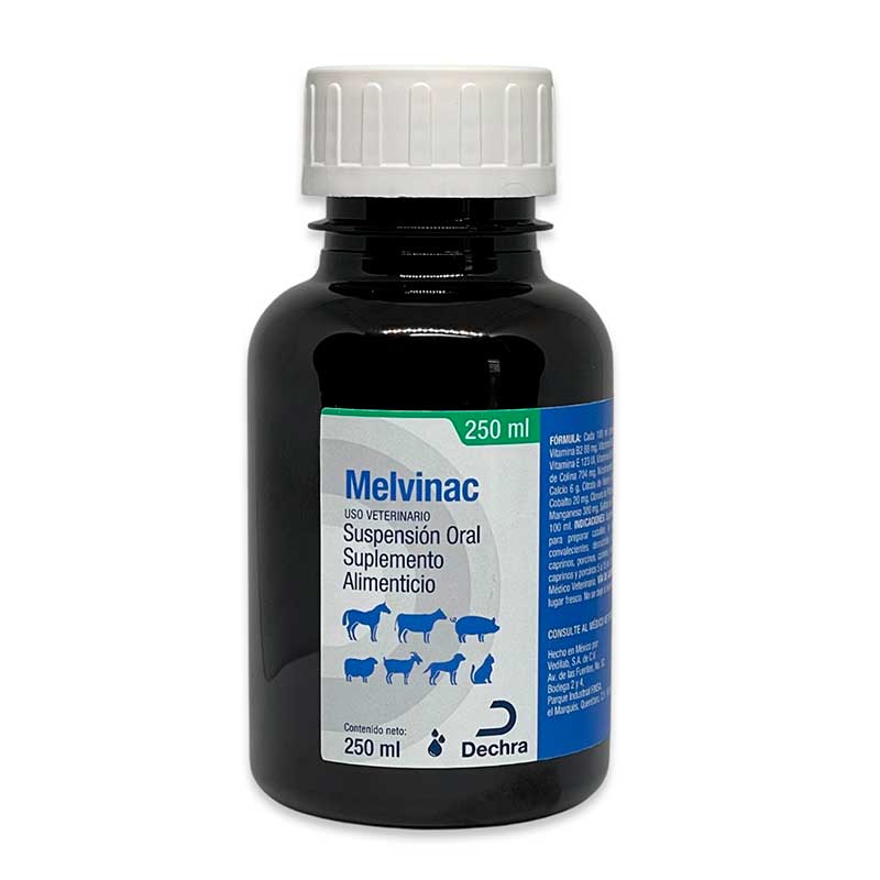 Melvinac Jarabe es un suplemento alimenticio vitamínico-mineral indicado para preparar caballos y corregir deficiencias nutricionales. Es especialmente útil en animales convalecientes, desnutridos o anoréxicos, ayudando a restaurar su balance nutricional.