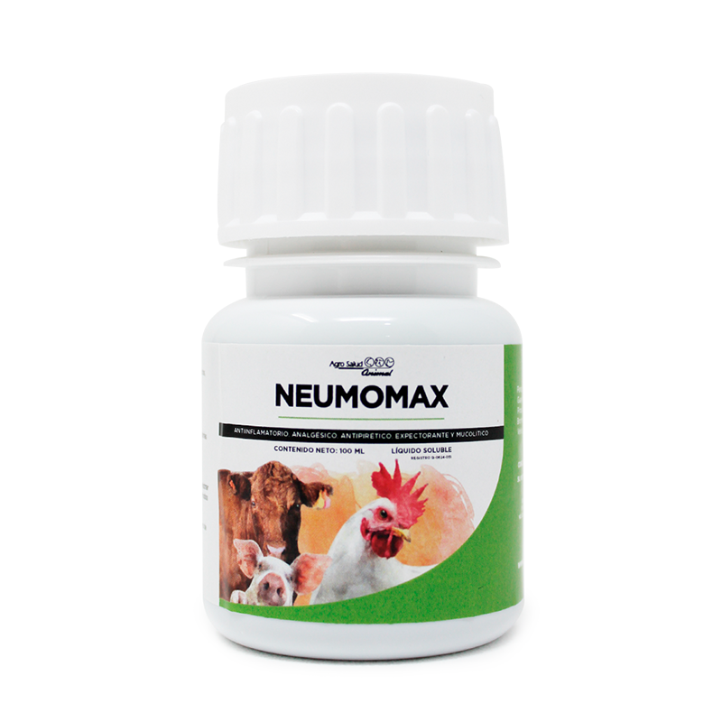 Neumo Max de Agrosalud es una solución oral que contiene Paracetamol, Guayfenesina, Piroxicam y Bromhexina Clorhidrato. Está indicado para bovinos como tratamiento sintomático de enfermedades infecciosas respiratorias.
