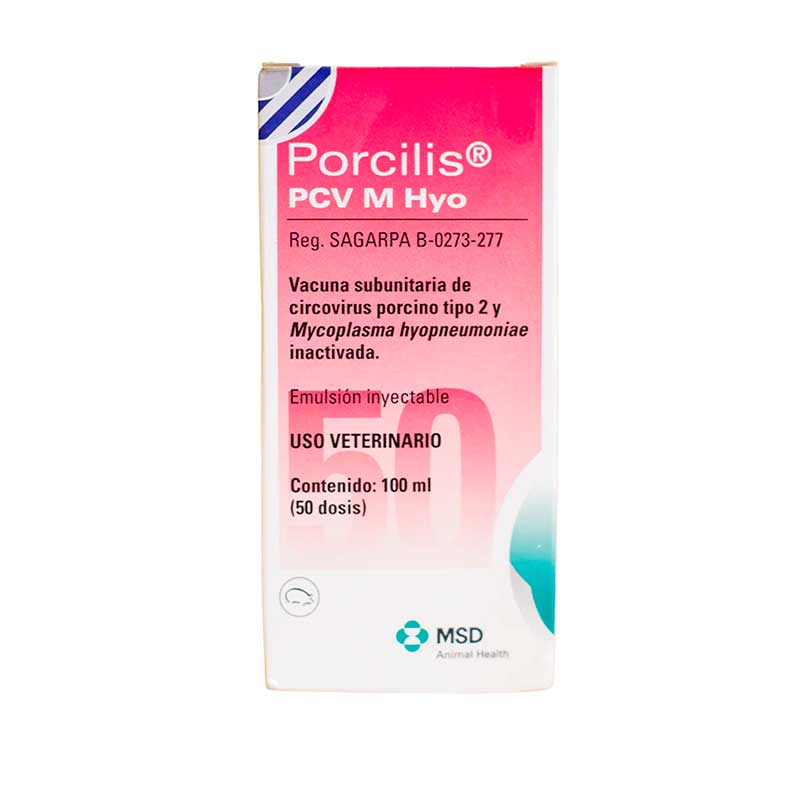 Porcilis PCV M Hyo 100 ml 50 Dosis es una vacuna combinada del laboratorio MSD Salud Animal, indicada para porcinos, que proporciona inmunización activa contra el Circovirus Porcino tipo 2 (PCV2) y Mycoplasma hyopneumoniae.
