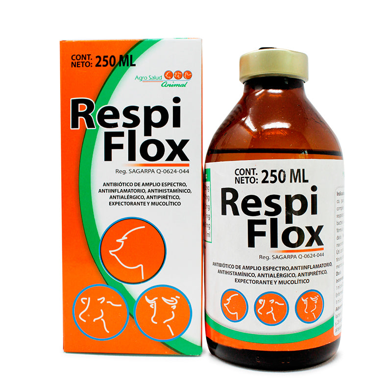 RespiFlox es un antibiótico de amplio espectro formulado con Florfenicol y Lincomicina, desarrollado por el laboratorio Agrosalud para uso en bovinos. Su uso principal es el tratamiento completo de enfermedades respiratorias agudas o crónicas causadas por bacterias sensibles.