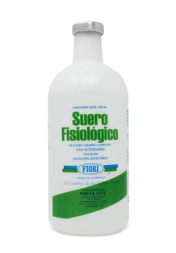 Suero Fisiológico de Fiori es una solución hidratante a base de cloruro de sodio al 0.9% en agua inyectable. Este producto está indicado para todas las especies y se utiliza principalmente para la rehidratación y como diluyente de medicamentos.