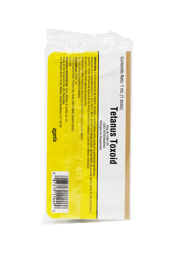 Tetanus Toxoid de Zoetis es una vacuna biológica en suspensión para equinos, indicada para la prevención del tétanos y la encefalomielitis equina.