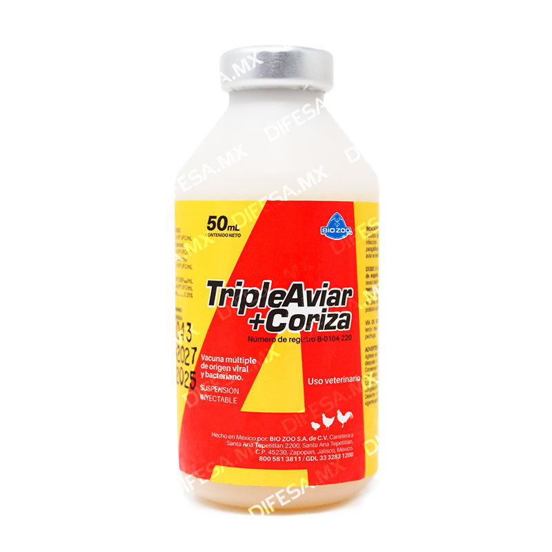 Triple Aviar + Coriza de Biozoo es una vacuna aviar combinada indicada para la prevención y control de coriza infecciosa causada por Avibacterium paragallinarum, enfermedad de Newcastle y cólera aviar en aves sanas.