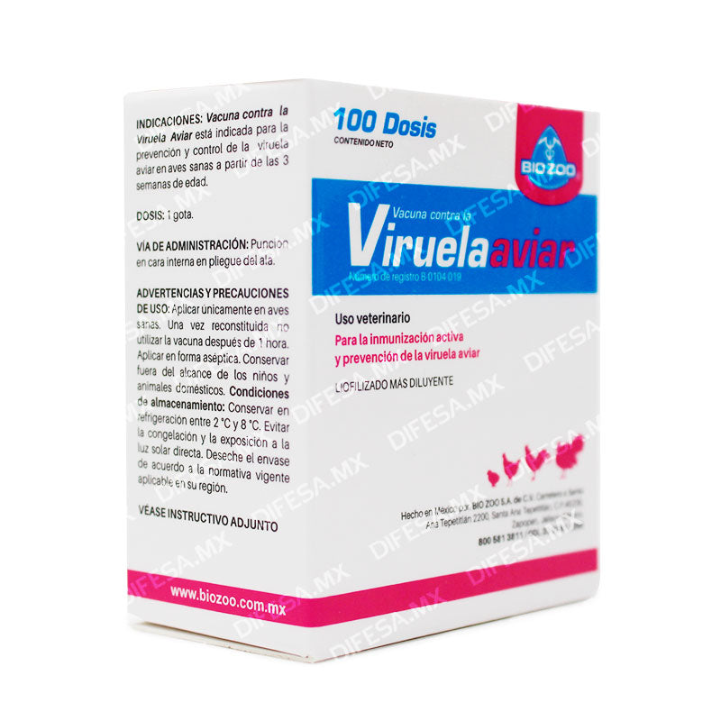 Viruela Aviar es una vacuna del laboratorio Biozoo, indicada para la prevención y control de la Viruela Aviar en aves sanas a partir de las 3 semanas de edad.