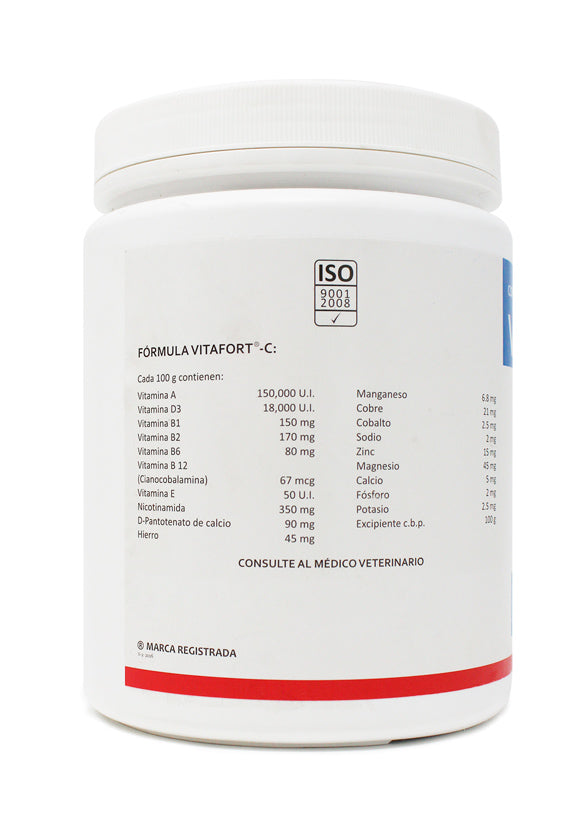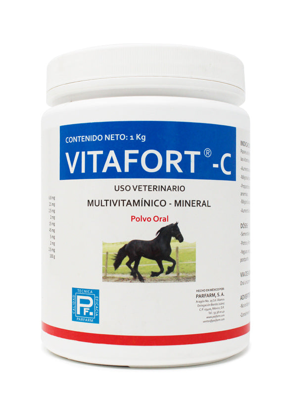 Vitafort-C es un suplemento vitamínico-mineral en polvo oral para bovinos. Sirve para proporcionar una nutrición óptima, aumentando el apetito, mejorando el crecimiento y otorgando mayor resistencia a enfermedades.
